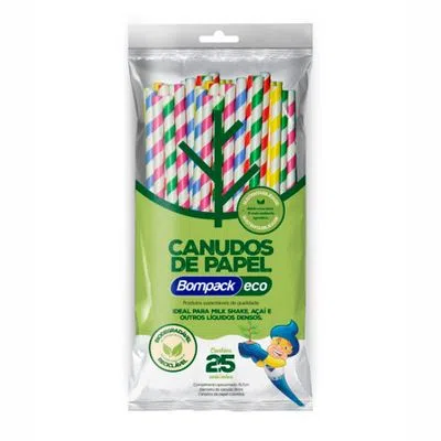 Canudo De Papel Misto 8MM 25un BOMPACK
